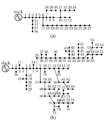 En esta sección, se presentan las características principales de los sistemas de prueba utilizados para validar la implementación del DCBWOA para ubicar y dimensionar las unidades de generación PV en redes de distribución. Los sistemas de prueba seleccionados son de estructura radial y se componen de 34 y 85 nodos respectivamente [21].