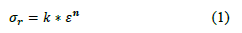 Using linear regression by the least-squares numerical method with the pairs of points (σr, ε) the value of the strain hardening exponent n is obtained, as indicated by the standard [14].