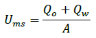 (2)Los flujos volumétricos o velocidades superficiales del aceite 𝑈𝑜𝑠 y el agua 𝑈𝑤𝑠 se calculan como la relación entre el flujo volumétrico de fase y el área de la sección transversal de la tubería ecuaciones (3) y (4), por lo tanto, para el aceite y el agua, tenemos