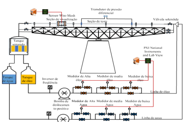 El núcleo de ingeniería térmica y fluidos (NETeF) de la EESC - USP cuenta con una plataforma móvil (figura 2) compuesta de un tubo de acrílico de 12 m y diámetro interno de 25,4 mm. El agua y el aceite mineral son almacenados en tanques de propileno por separado.