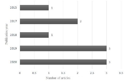 This first stage of the study focused on the analysis of the results obtained in the first search string after the filtering stages. The final 10 documents selected for this first stage will be discussed and the results were classified into 5 different areas (graphite Nanocomposites, biomedical, Nano cellulose, Nano-particles, and Nano-structures using the VAT photopolymerization 3D printing techniques. Table 3 presents the journals in which the selected articles appeared as well as their main area of impact and year of publication. The number of articles per publication year is represented in Figure 4, and the number of selected articles by area of application with its corresponding percentage of participation is represented in Figure 3.