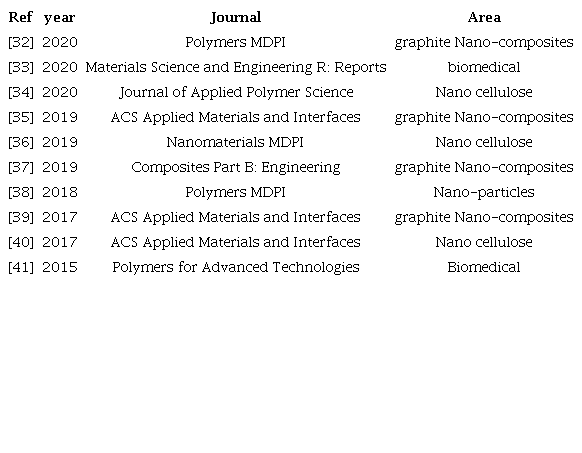 In the articles from stage 1, the procedures for material characterization and mechanical properties assessment are well known, as well as correctly applied because all of them material characterization and mechanical analysis of the materials were performed before and after the creation of the nanocomposite material.