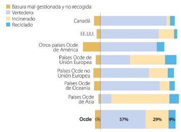 Por lo tanto, del gran número de toneladas producidas anualmente, hay un número significativo de desechos plásticos que no reciben un tratamiento adecuado, cuyo destino son los vertederos, mares, y océanos; mientras otra cantidad es sometida a un proceso de incineración a cielo abierto, liberando contaminantes nocivos, no solo para el ser humano, sino también para la vida silvestre y el medio ambiente (figura 1).