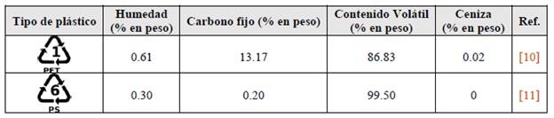 Además, la materia prima correspondiente a los polímeros PET y PS, permite obtener una aproximación de los productos esperados del proceso de pirólisis; mediante el análisis próximo de los mismos, que permite determinar la presencia de cuatro componentes en cada uno de los polímeros: la materia volátil, el carbono fijo, el contenido de humedad y el contenido de cenizas [24], sin embargo, en el proceso de pirólisis la materia volátil y el contenido de cenizas influyen directamente en el rendimiento del producto líquido, es así como las investigaciones respaldan que la cantidad de materia volátil favorece la producción de una cantidad significativa de aceite de pirólisis [25].