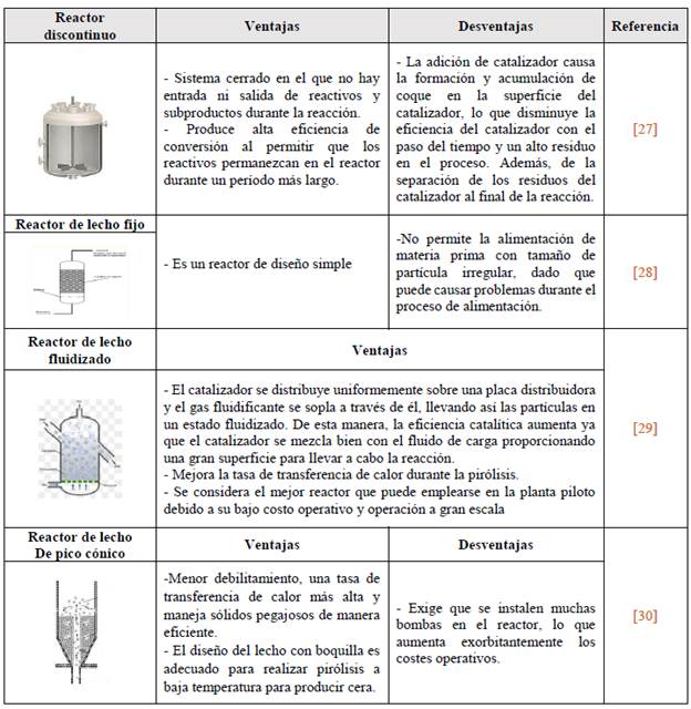 En la investigación de la pirólisis de plásticos se han utilizado muchos sistemas de reactores, en los que se destacan (ver tabla 3).