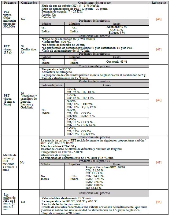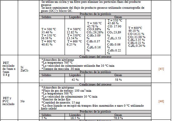Por lo tanto, la variación de los parámetros en el proceso pirolítico de los polímeros influye en la cantidad y composición de los productos obtenidos, como se muestra en el anexo 1.