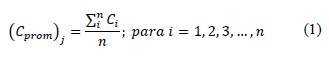 Donde, (Cprom) es la concentración promedio del periodo de tiempo j, ∑ =1 es la suma de los n datos de concentración de contaminantes i obtenido en el periodo de tiempo j, y n es la cantidad de datos obtenidos en el periodo de tiempo j.