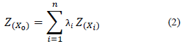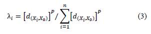 Donde, Z(x0) es la concentración estimada de PM2.5 en la posición objetivo x0 , Z(xi) son datos de PM2.5 a nivel de la estación de monitoreo de la muestra xi . λi indica el valor de ponderación, d es la distancia euclidiana entre la ubicación del objetivo y los datos de muestra, mientras que p indica un parámetro de potencia.