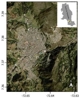 La ciudad de Pamplona está ubicada en la zona suroccidental del departamento del Norte de Santander con coordenadas 7.3781° N y -72.6509° E (Figura 1). La ciudad de Pamplona cuenta con una población de 180.667 habitantes, donde la mayoría participa en actividades de comercio y turismo local [14].
