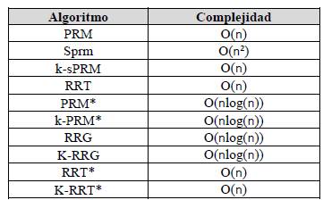 Teniendo en cuenta estos análisis, la complejidad general del algoritmo se obtiene multiplicando la complejidad de ambos ciclos. Por lo tanto, la complejidad computacional del algoritmo es del orden O(N * 1), que se simplifica a O(N). Esto significa que el tiempo de ejecución del algoritmo aumenta linealmente con el número de obstáculos presentes. En comparación con algoritmos como RRT, PRM y sus variantes, este algoritmo tiene una complejidad similar como se ve en la Tabla 4.