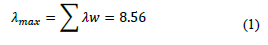 Posteriormente, se obtiene la ponderación de la suma de los valores resultantes del vector, lo cual permite obtener el valor máximo propio mediante la aplicación de la Ecuación 1.