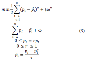 As in the economic dispatch, in the PCC a central agent is needed where all the optimization calculations are developed and finally, the power to be generated is sent to each converter. The optimization model has a quadratic objective function, subject to the power balance, the maximum available power of each primary resource, and the dynamic of the primary resource; finally, considering that the utilization factor "r" must be between 0 and 1, the complete optimization model for the PCC is shown in (3).