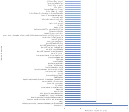 Las publicaciones en las revistas de medicina son las más representativas en el corpus analizado y ello muestra que la pregunta por la colaboración está ocupando un lugar central en los campos de la salud por las demandas de esfuerzos colectivos que impone la pandemia. Para los estudios de colaboración es de interés profundizar en las implicaciones y aprendizajes de esos espacios para las prácticas de cooperación en otras áreas.