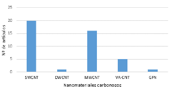 Además, en la búsqueda bibliométrica se incluyó todo tipo de revisión referente a catalizadores de óxidos de hierro empleados en la producción de nanomateriales de carbono. El principal criterio de exclusión empleado fueron los artículos científicos que no incluyeran información sobre este tipo de catalizadores. Al depurar la revisión bibliométrica, 71 artículos científicos fueron seleccionados.