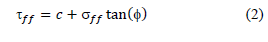donde c es la cohesión, τff es el esfuerzo de corte en la condición de falla, σff, el esfuerzo normal en la condición de falla y ø el ángulo de fricción, este modelo es una buena aproximación para la simulación de suelos, debido a su facilidad de implementación, su respuesta lineal permite la discretización del modelo ya que no requiere muchos parámetros, como desventaja su respuesta no tiene en cuenta la dilatación ocasionada por el aumento de temperatura; la calibración de este modelo se realizó según lo reportado por Colasanti [21]. El valor de la cohesión se asumió en 0.038 MPa [27], debido a su tamaño de grano uniforme y a la condición seca de la misma. Por otro lado, el valor del ángulo de fricción se obtuvo de los valores obtenidos para el suelo para la verificación del experimento y fue uno de los parámetros a variar en los estudios numéricos que se llevaron a cabo. Para las relaciones esfuerzo-deformación en el rango elástico, se asumió un módulo de Posisson v = 0.3 [27], y el módulo de elasticidad, E, también se tomó de los datos del suelo para la verificación con los datos experimentales y se varió para el estudio numérico.