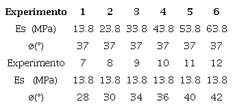 En la Tabla 2 se muestra el rango de los parámetros variados en el estudio paramétrico. El efecto de las propiedades del suelo (módulo de elasticidad Es y ángulo de fricción ø) sobre el esfuerzo máximo en el codo de la tubería fueron analizados.