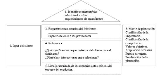 La casa de la calidad es conocida como un mapa conceptual que proporciona los medios para una correcta planificación y fluidez de las comunicaciones interfuncionales, a través de seis matrices o campos, como se muestra en la Figura 1.
