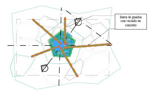 La superficie colectora es sostenida estructuralmente por 5 barras de guadua con vaciado en concreto para un mayor soporte estructural como muestra la Figura 4.