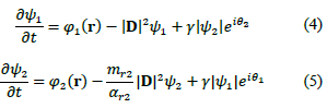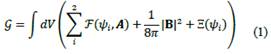 where 𝑫=𝑖∇−𝑨, and 𝜑𝑖(𝑟)=(𝑓(𝒓)−|𝜓𝑖|2) 𝜓𝑖,𝑖=1,2. The equation for the vector potential 𝑨.