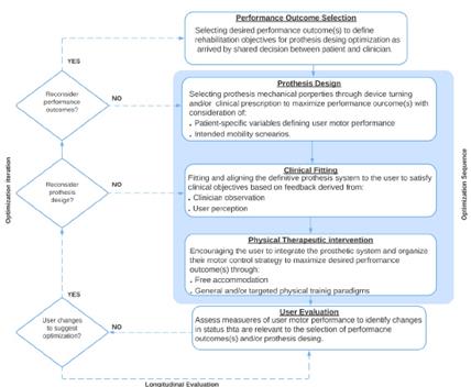 Basado en las investigaciones de los autores del trabajo, se apoya que las consideraciones relacionadas al rendimiento motor del paciente producen predicciones más precisas acerca de los procesos de rehabilitación necesarios para el paciente. El trabajo muestra como resultados los diagramas de los algoritmos de optimización de las prótesis, y resalta que el método presenta una limitación muy grande, la cual recae en el trabajo propio y compromiso del usuario. La siguiente Figura 3 muestra esquemáticamente los algoritmos planteados por los autores.