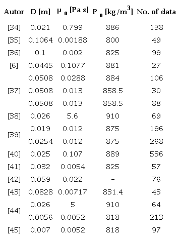 An analysis of experimental information obtained from previous research [11], [32], [33], investigating the behavioral characteristics of a two-phase fluid, was conducted. In this study, information collected from 13 authors focused on the behavior of a mixture of oil and water in horizontal piping, and 17 different schemes were presented, see Table 1. The dataset comprises a total of 2,156 experimental data points gathered from previous research.