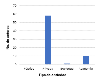 La categorización de las partes interesadas se llevó a cabo considerando su naturaleza y se dividió en cuatro grupos principales: entidades privadas, entidades públicas, instituciones académicas y sociedades organizadas. Durante este proceso, se observó un significativo aumento en el número de partes interesadas interesados en el proyecto, lo cual se debió a la inclusión de nuevos participantes, tales como clústeres de empresas, embajadas y asociaciones, entre otros. Estas nuevas partes interesadas han demostrado un marcado interés en fomentar el desarrollo espacial basado en esta misión.
