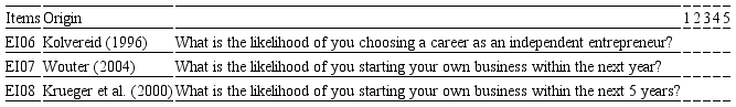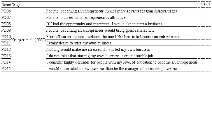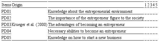 Although the objectives of this study were ambitions and the results innovative, we are aware of the limitations that have to be explored in future works. One of the elements to be improved is the measurement and validation of scales. The instruments were built up from questions found in several studies, and in general resulted in more than one factor per dimension. Obviously, improvement is needed aiming at obtaining only one factor solution per dimension, which would more coherently reflect Krueger et al. (2000) model. Finally, it seems relevant to highlight that the evidence discussed refers to the state of Rio Grande do Sul. Further studies, including other states and perhaps employing different methods seem to be necessary to validate the results obtained in this study.