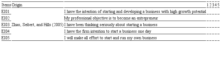The perceived desirability (PD) is a measure of the individuals’ perception of how desirable is to be an entrepreneur. Perceived self-efficacy (SE), or the individuals’ belief in their own capability of being successful in certain activity, is based on the individuals’ perception of their own competences and abilities (Wilson, Kickul, & Marlino, 2007). This construct developed by Bandura (1997) reflects the individuals’ faith in having abilities, as well as their belief that they will be able to convert these abilities successfully into a chosen result. The perceived viability (PV) refers to the individuals’ perception that it is really viable, possible, for them to build up a career as a professional entrepreneur. Finally, the entrepreneurial intention (EI) measures the individuals’ actual intention to start a business.
