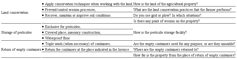 The law of 1988 considers agricultural land as a heritage of humanity, leaving its users with the obligation to preserve it - Art. 1 (São Paulo, 1988). Thus, everyone who exploits agricultural land is obliged to, among other things, pursuant to Article 2 of Decree No. 41.719/97: ensure the proper use and conservation of water in all its forms; control soil erosion in all its forms; prevent processes of desertification; prevent the deforestation of areas unsuitable for agriculture, forestry and pastoral exploitation and promote possible permanent vegetation in these areas, when deforested; and recover, maintain and improve the physical, chemical and biological characteristics of the agricultural land (São Paulo, 1997).