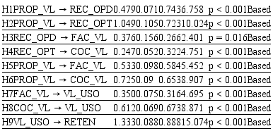 In order to provide continuity to the validation model, the hypothesis test was employed. Both the significance and the magnitude of the estimated regression coefficients were examined. They measure the amount of expected change in the dependent variable for each unit of change of the independent variable. The signal of this coefficient indicates the direction of the correlation: either positive or negative (Hair et al., 2009). When the regression coefficient is meaningful, the relation between the two variables is empirically proved (Byrne, 2016; Kline, 2011). Table 4 explains this quite clearly.