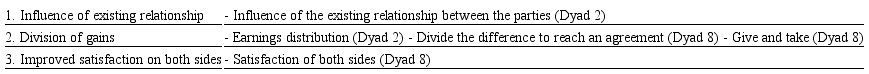 Thomas et al. (2015) emphasize that although negotiation strategy studies normally focus on economic aspects, the results found in their study highlight the importance that relational results have for the negotiations, considering future negotiation expectations.