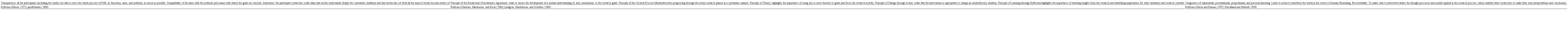 The second is a compilation of some provisional validation criteria (Table 3) that could be mobilized to justify the validity of the participatory research work. This represents a first step in a reflection that will evolve during the next years.