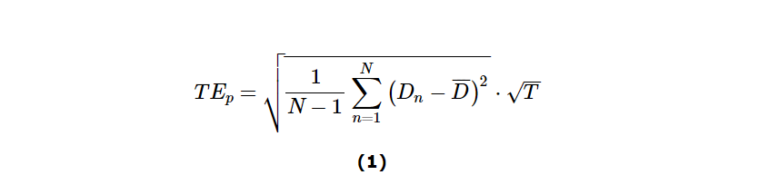 where TEp is the tracking error, N is the number of observations, n is the index of the sum, T is the sample frequency, Dn = Rportfolio,n − Rbenchmark,n and D is the average of the return differences. Thus, we have: