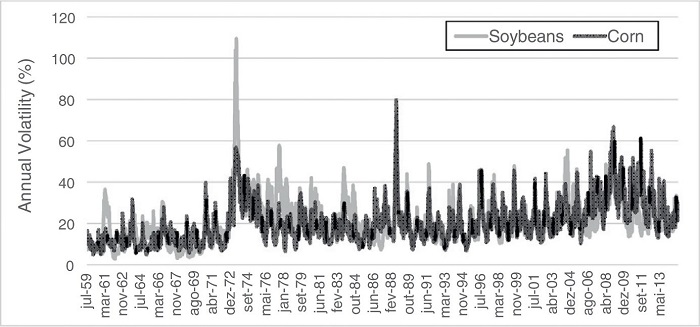 Agricultural markets are largely characterized by high price volatility, due to the low price elasticity of supply. This characteristic highlights the risk of this activity, which represents a susceptibility factor for primary producing countries. During the first decade of the 2000s, major agricultural commodities experienced a sharp and rapid rise in price and volatility, thus stimulating discussions and research in order to understand the reasons that led to such a scenario. With the increase in biofuel production from grains and oilseeds and restriction of acreage growth due to environmental issues, the pressure on agricultural areas will intensify, which may be reflected in increasing food prices.