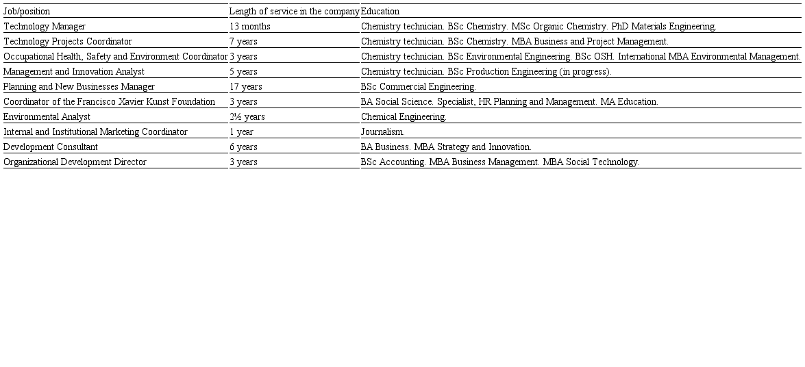 Secondary data were obtained from documents supplied by the company. Documental data is relevant in case study approaches (Yin, 2005), as the main purpose of information obtained from documents is to strengthen and support other sources of evidence, particularly to supply details. The following Artecola documents were examined: (a) the company's social report; (b) book "60 anos: soluções inovadoras que unem" (60 years of innovative solutions that bind); (c) company's website; (d) environmental management system handbook; (e) articles printed in the company's monthly newsletter.