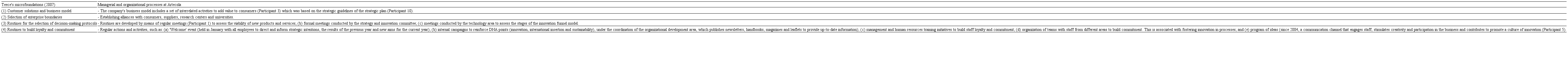 Table 6 lists the main managerial and organizational processes that were identified for each microfoundation of the reconfiguring capability.