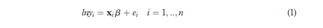 The SF models were initially developed by Aigner, Lovell, and Schmidt (1977) and Meeusen and Van Den Broeck (1977) to estimate the inefficiency associated with a traditional function of production (or cost). In other words, when yi is the production (or cost) of company i (output) and xi a vector of k explanatory factors (inputs), the function of production or costs would be given by: