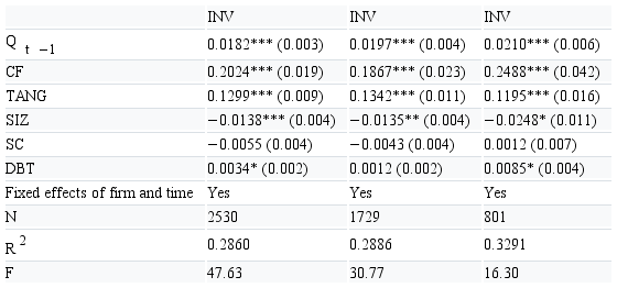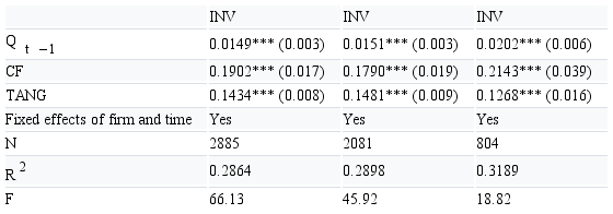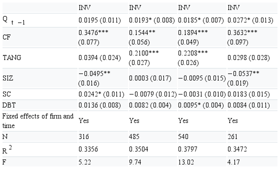 INVi,t=β0+β1Qi,t-1+β2CFi,t +β3TANGi,t+δXi,t +∑ifirm+∑tyear+ui,t