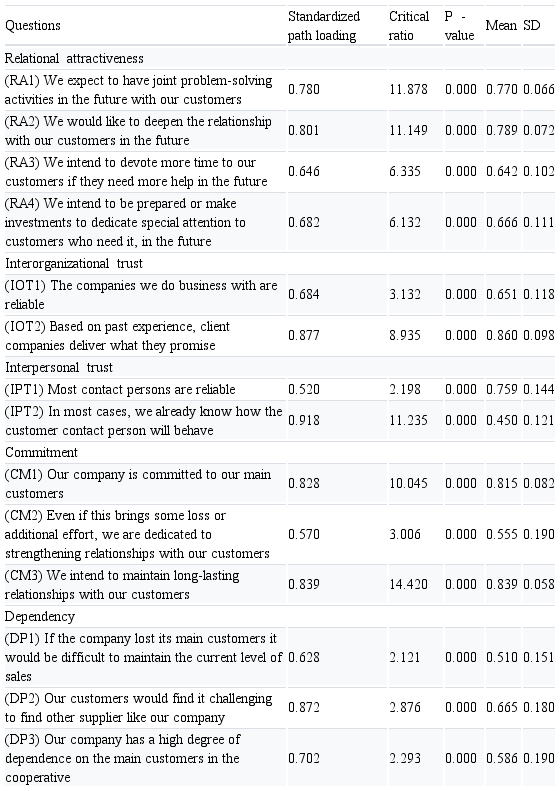 Regarding the study results, relational attractiveness is positively influenced by commitment, interorganizational trust and expected value, confirming studies previously conducted by Hald et al. (2009) and Ellegaard and Ritter (2007). Commitment is the construct that most influences relational attractiveness. Thus, the greater the desire to establish a stable relationship, even if it involves short-term sacrifices, the greater the perceived attractiveness in the relationship between supplier and customer. The second most influential construct is expected value. Thus, the greater the ratio of perceived benefits to the future expectation of this relationship, the greater the attractiveness. Third is interorganizational trust, indicating that the supplier’s belief that the customer will not act negatively toward their company positively influences relational attractiveness.