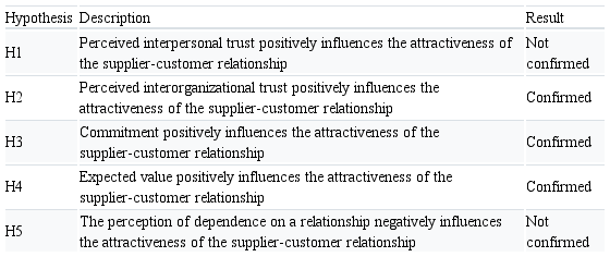 Perceived interpersonal trust positively influences the attractiveness of the supplier-customer relationship.