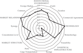 The institutional environment and the market structure were not shown as unfavorable drivers of competitiveness, but they must be carefully considered. The rural loans offered by the government through the National Support Program for the Medium Rural Producer increased 37%, equivalent to 4 million Brazilian reais from the 2018–2019 crop to the 2019–2020 crop (MAPA, 2019). Rural producers’ access to agricultural credit occurs through the so-called tie-in sales of rural insurance, a common practice performed by financial institutions. The coalition between lenders and insurers often upsets producers due to the lack of alternatives. To curb this practice, Law No. 13,195/2015 introduced a measure whereby the government cannot establish rules that oblige the producer to contract rural insurance to access credit, and the financial institutions will be required to offer, at least, the option of two policies from different insurers (Brasil, 2015).