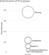 Analysis of the 16 US 100RC documents also showed how practitioners describe the processes that resilience P&Cs will undertake. Five process categories emerged, which include, in order of prevalence: planning, engagement, evaluation and monitoring, research and process (general) (Figure 6).