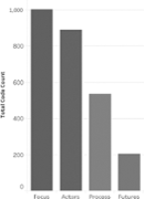 Analysis showed that across the 16 resilience planning documents, P&Cs were mentioned over 2,000 times. When P&Cs are discussed, the most commonly co-occurring codes fall into four separate theme groups. In order of prevalence, these themes include: focus (what topic the P&C targets), actors (who is involved in the P&C), process (how P&C activities unfold) and futures (why the P&C has value) (Figure 2).