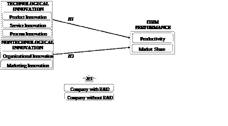 H3b. Manufacturing firms with R&D have a greater positive effect on the relationship between innovation outcomes and market shares than manufacturing firms without R&D.