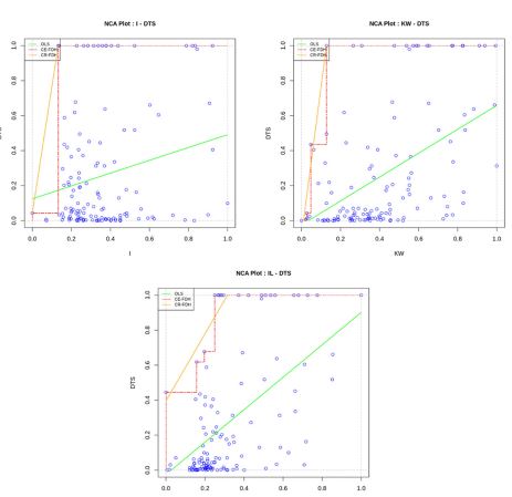 Additionally, we choose to apply NCA to investigate necessity conditions, as important theoretical and empirical evidence shows that NCA leads to better and robust results than fsQCA, concerning necessity analysis. In short, the evidence claims that: