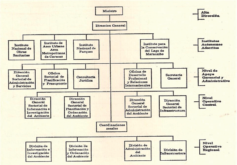 En la década de los años 70 y 80 en Venezuela la gestión ambiental era asumida por el Ministerio del Ambiente y de los Recursos Naturales y Renovables, y sus competencias en materia ambiental eran atribuidas por la Ley Orgánica del Ambiente (2007) , con la intensión de fomentar el aprovechamiento de los recursos naturales impulsando un desarrollo.