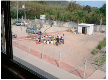 Cependant, même dans ce contexte, l’école possède encore différents projets menés individuellement par les enseignants, ainsi que des projets qui fortifient le collectif de l’école comme celui de la Salle de Recyclage, le Programme de recyclage de papier (Pro-repa)28 ; le Projet « Plantar e Colher: Um jeito de aprender »29 du jardin potager qui est issu d’un projet d’une classe de l’école élémentaire et qui s’est transformée dans un des projets de l’école; les projets écologiques du Laboratoire de sciences et le Projet Entorno Escolar (PEE), que l’on approfondira dans la suite de l’article.
