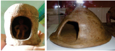 Al estudiar de manera comparativa una muestra de aglomerados de casas pastos del páramo y del pie de monte occidental, se tiene información para discutir cómo estuvieron organizados los caseríos y las aldeas precolombinas, pero también resulta útil para inferir cómo eran las interacciones sociales a corta y larga distancia. En primer lugar, ambas zonas contienen aglomerados de casas de diferente número y tamaño, estructuras cuya forma circular con una sola entrada es recurrente, y contienen cerámica ritual como evidencia de la presencia de tumbas subterráneas debajo de las casas. En más de una ocasión, en colecciones privadas, he visto representaciones de casas pastos modeladas en barro cocido, que posiblemente fueron dispuestas como objetos de acompañamiento mortuorio (Figura 12): son como maquetas de las casas que se han estudiado en el presente trabajo. Una suerte de tamaño estándar para la casa pasto es de 10 m de diámetro, mientras que las de menor diámetro podrían ser interpretadas como cuartos de almacenaje, y aquellas de mayor tamaño podrían ser entendidas o bien como lugares de residencia de familias grandes o élites, o bien como espacios de uso ceremonial.