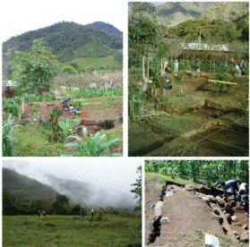 La cerámica, los artefactos de metal y los petroglifos de filiación pasto en Chilmá y la información etnohistórica existente hasta 1601 (Landázuri, 1995; Salomon, 2011: 358-370) permiten sugerir que Chilmá funcionaba como una colonia pasto en zona baja. En comparación con la zona de páramo (Uribe, 1977-1978; Bernal, 2011), Chilmá se observa como un asentamiento disperso por el número, el tamaño y la distribución espacial de las estructuras. La región del río Chilmá se caracteriza por una alta humedad debido a las vertientes que brotan de las peñas y porque una neblina y una llovizna constante ocurren todo el año. Para contrarrestar esta severa humedad, los pastos construyeron montículos de tierra artificiales, diques rectangulares, canales de agua y terrazas donde se estima que desarrollaron agricultura intensiva (Vásquez et al., 2006). Pese a que hay sugerencias de plantaciones de coca en las fuentes documentales del siglo xvi, los estudios paleobotánicos preliminares demostraron que el maíz (Zea mays) fue el principal cultivo en Chilmá; tales estudios también identificaron frutas, en particular de Fragaria vesca (fresa), y residuos de cultivo y consumo (Astudillo, 2007). Sin embargo, no hay evidencia paleobotánica de la hoja de coca.