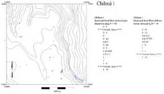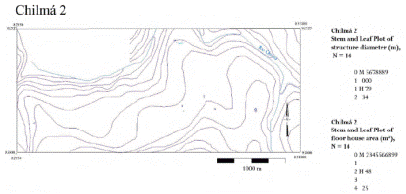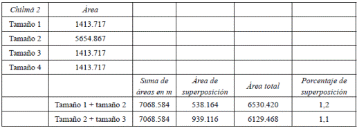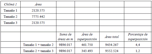 En el caso de Chilmá 1, el porcentaje de superposición entre las estructuras de tamaño 1 y 2 es consistente (Tabla 4); en este sitio solamente hay tres tamaños de estructuras, y la primera correspondencia está entre 1 y 2 (4,4%), que resulta mayor que en El Arrayán y en Hacienda Pukará. La segunda correspondencia ocurre entre las estructuras de tamaño 2 y 3; contrariamente, en menor grado que en El Arrayán.